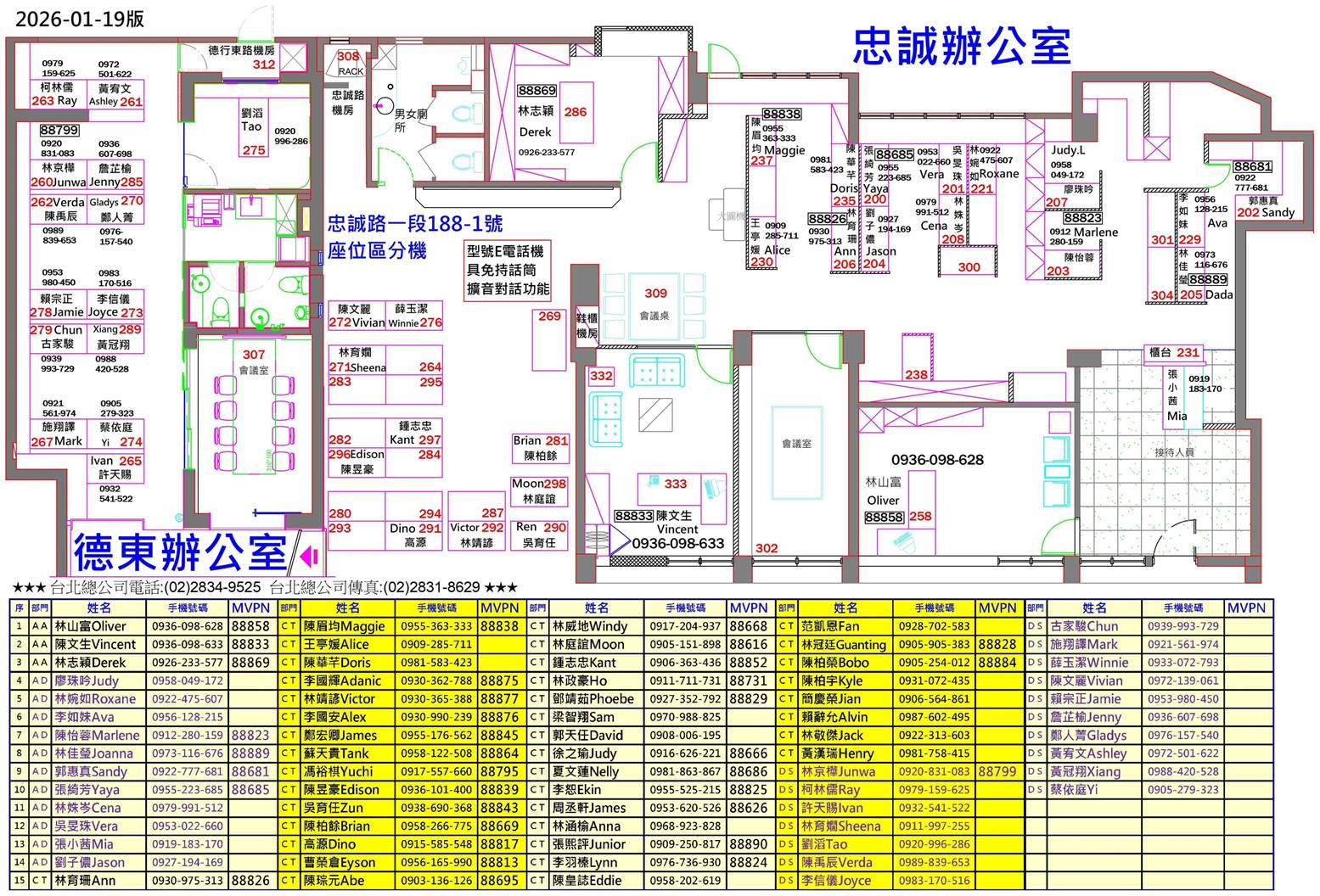 ★★★台北總公司辦公室座位分機圖★★★不定時更新,即日起不再發紙本,有紙本需求者可自行下載『座位分機圖pdf檔』列印使用。★★★